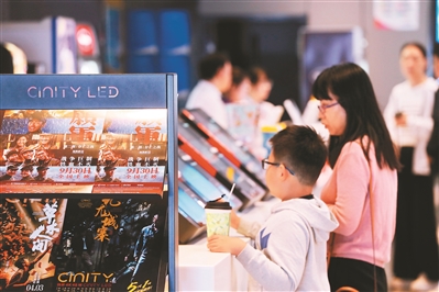 2024年10月7日,市民在浙江省嘉兴市一家影城取票准备观影。2024年国庆档新片票房(含点映及预售)突破20亿。新华社发(金鹏摄)