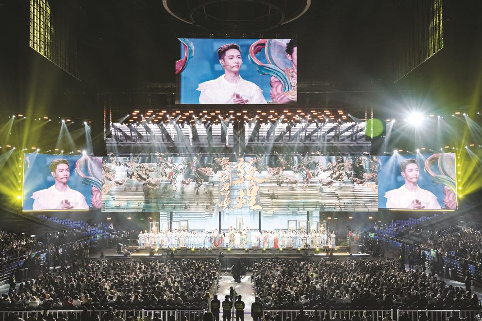 连续三晚,以数字多媒体营造“敦煌空间”,用多元风格的歌舞诉深情,这场百年追寻、千年回响将人们引入一个与我们所有人相关的敦煌。当音乐话剧的形态与敦煌在数字时代的焕新达成内在气质的高度契合,一次又一次,中华文脉在青春的律动中拥抱观众。