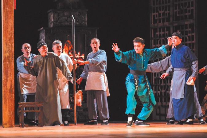 谢君豪扮演的卢孟实是戏里的灵魂人物,他与福聚德老掌柜初相见时,极为讲究地撩袍入座,真是气度非凡。下半场,为了应对上门的债主,他精心策划演出的“空城计”和“借花献佛”,也是寸寸惊心。大角色出彩,小人物也同样吸睛。我印象特别深的是克五少爷哀嚎着“一切都完了”时,原以为他哭的是家道中落,结果都是些具体而微的失去——冬天涮肉的铜锅子被少奶奶当废铜卖了,锤螃蟹肉的整套工具烧没了,后院埋的几坛佛跳墙都被抄走了,只闻过味儿还一口没吃着呐……对一个真正的吃货而言,的确是“完了”。