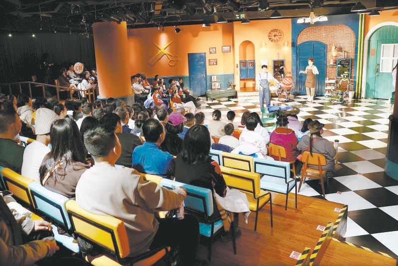 去年9月以来,《疯狂理发店》已在这里上演百余场,平均上座率达75%。“我刚来北京工作,太喜欢北京的文化氛围了!”观众樱樱告诉记者,开在商场里的沉浸式剧场令她大开眼界,观众与舞台的距离更近,身临其境的观演体验也更能俘获年轻人的心。