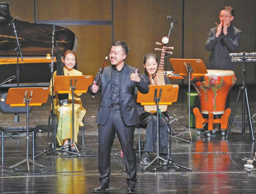 笛箫演奏家张凯强竖起大拇指,为现场观众的热情互动点赞。北京日报记者 方非摄