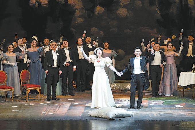 本报讯(记者 高倩)昨晚,国家大剧院制作威尔第歌剧《茶花女》迎来第九轮演出,指挥家余隆执棒国家大剧院管弦乐团,携手维涅拉·吉玛蒂耶娃、石倚洁、张扬等歌唱家领衔的主演阵容,再次上演这部西方歌剧史上的传世经典。
