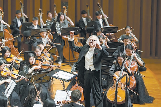 指挥大师陈燮阳与苏州青少年交响乐团同台演出。北京日报记者 方非摄
