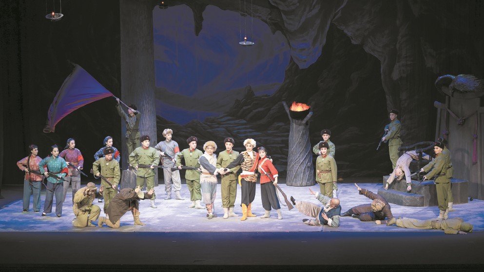 8日晚,《智取威虎山》亮相上海大剧院,拉开第十届中国戏剧奖·梅花表演奖终评大幕。 文汇报记者 范家乐摄