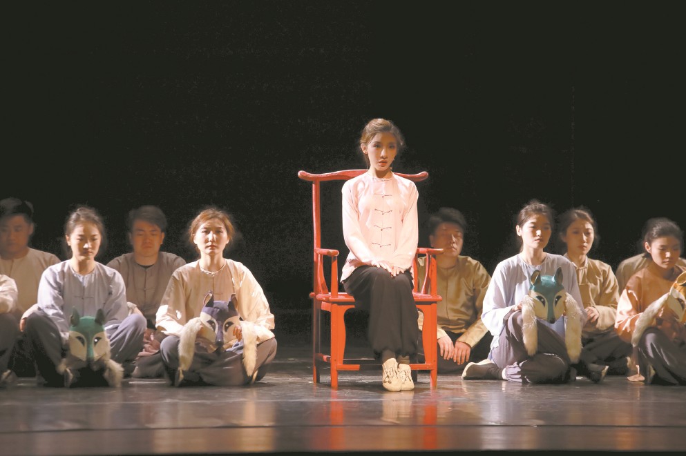 话剧《主角》中,青年演员刘李优优(左二)饰演秦腔名家忆秦娥。 (主办方供图)