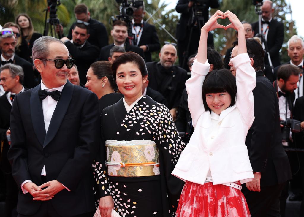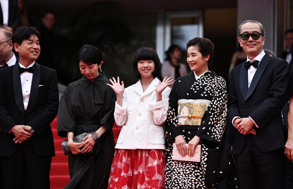 5月17日,在法国戛纳举行的第78届戛纳国际电影节上,主竞赛单元影片《雷诺阿》主创人员在影片首映后走出电影宫。新华社记者 高静 摄