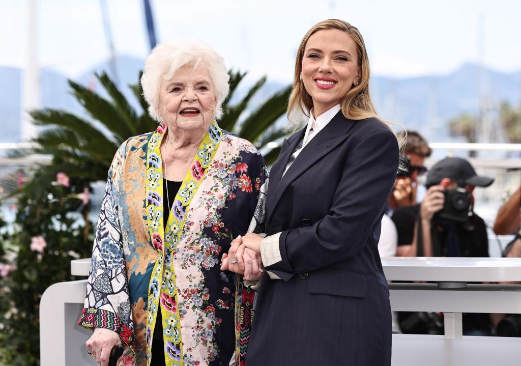 5月21日,在法国南部小城戛纳举行的第78届戛纳国际电影节上,影片《了不起的埃莉诺》导演斯嘉丽·约翰逊(右)携主演朱恩·斯奎布亮相拍照式。新华社记者 高静 摄
