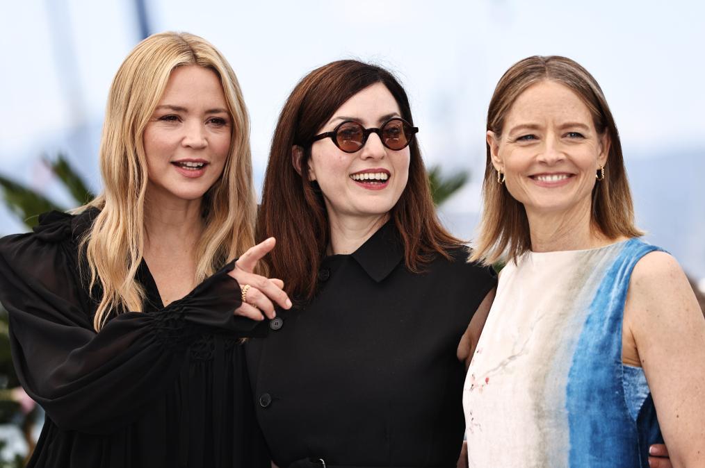 5月21日,在法国南部小城戛纳举行的第78届戛纳国际电影节上,比利时演员维尔日妮·埃菲拉、法国导演丽贝卡·兹罗托斯基和美国演员朱迪·福斯特(从左到右)亮相非竞赛单元影片《私生活》的拍照式。新华社记者 高静 摄