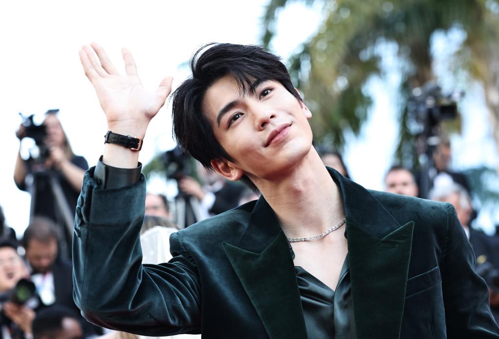 5月21日,在法国南部小城戛纳举行的第78届戛纳国际电影节上,中国演员张凌赫出席主竞赛单元影片《时光留声》首映式。新华社记者 高静 摄