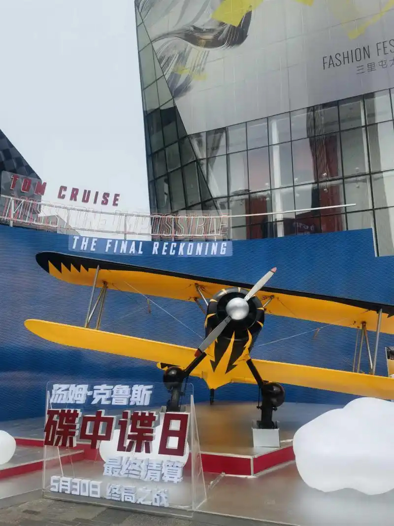 中国首映礼活动现场精心打造的沉浸式主题展区成为最大亮点——太古里广场中央矗立着一架近乎1:1复刻的影片同款亮黄色双翼战斗机,炫酷的造型与背后弧形巨幕变幻的云层景观相得益彰,营造出“翱翔云端”的视觉效果,引得众多观众驻足围观,纷纷拍摄“阿汤哥同款”打卡照。