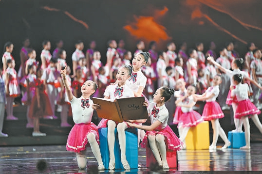 今年是中国人民抗日战争暨世界反法西斯战争胜利80周年,整场演出着重通过历史场景剧表演传承弘扬伟大抗战精神。“这次演出让我深刻认识到,要传承红色基因、传承中华文脉、传承奋斗精神,争当爱党爱国、勤奋好学、全面发展的新时代好少年。”一位来自中国宋庆龄基金会和平天使艺术团的小演员说。也有孩子们在数日排练中收获了值得长久珍藏的友情,一位从新疆远道而来的同学就通过这方舞台认识了全国各地的朋友:“我深深感受到了祖国大家庭的温暖。我们要像石榴籽一样紧紧抱在一起,共同为祖国发展贡献力量。”(北京晚报 记者 高倩)