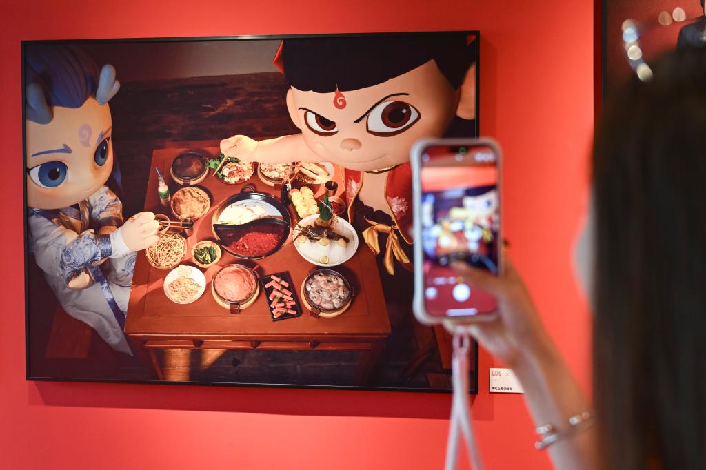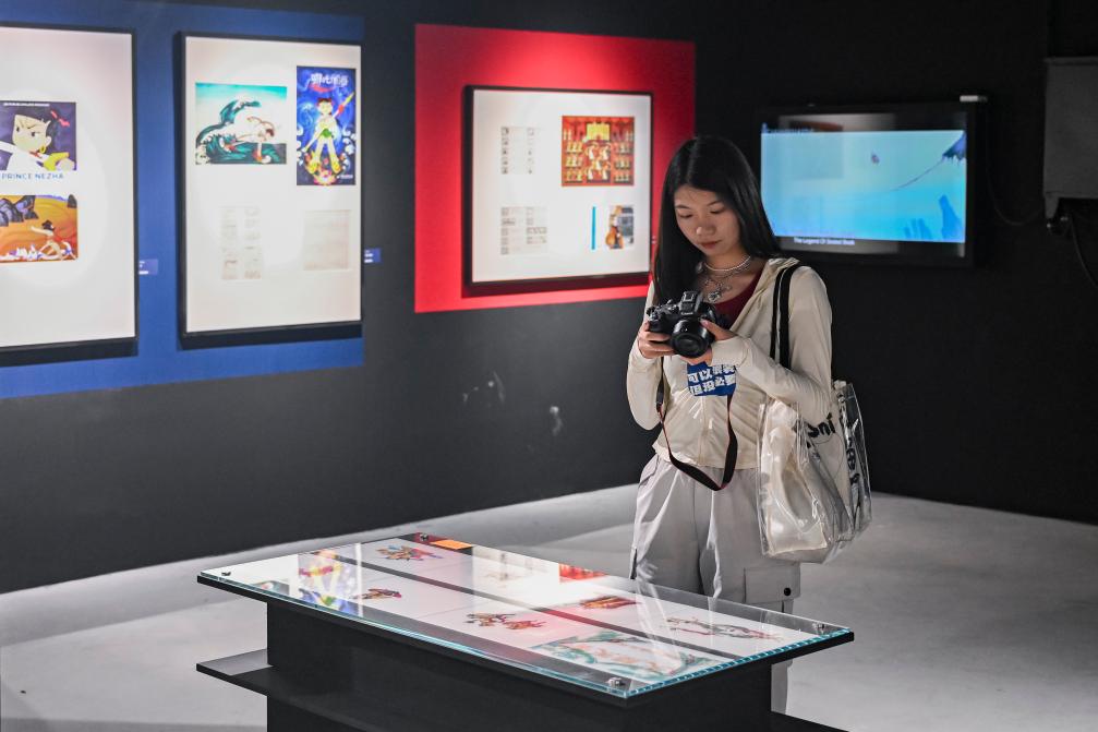 6月14日,观众在电影艺术展上拍摄展品。新华社发(陈浩明摄)