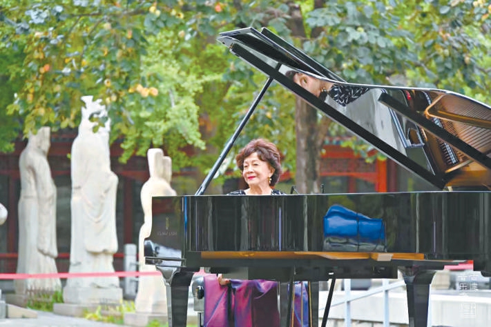 著名钢琴家鲍蕙荞在五塔寺演奏。古建音乐季/供图