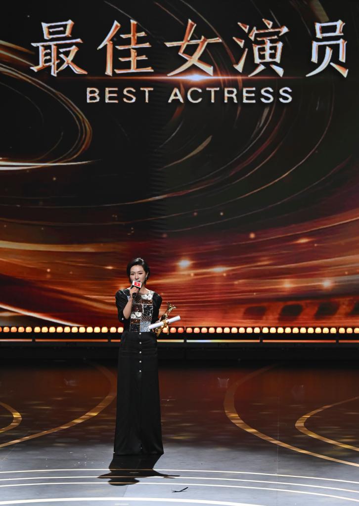 6月21日,《长夜将尽》女主角、中国演员万茜摘得最佳女演员殊荣。新华社发(陈浩明摄)