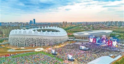 安徽省芜湖市峨山镇的繁昌人民体育公园内,人们在观看音乐节表演。 肖本祥摄(人民视觉)