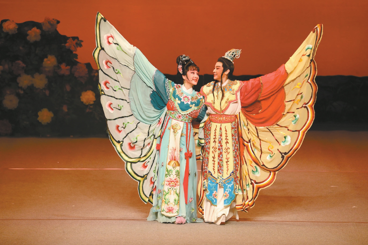 两台戏中,《梁山伯与祝英台》来自传统,是女子越剧树立清新委婉爱情叙事的核心剧目之一,《楼台会》一折在新中国成立前就曾被拍成电影。1952年,越剧改革领路人袁雪芬和范瑞娟以此剧参加声势浩大的第一届全国戏曲观摩大会,得到广泛好评。在百废待兴的社会形势下,电影《梁山伯与祝英台》克服重重困难完成拍摄,成为新中国第一部彩色电影,于1954年8月公演,成为全国观众熟悉越剧的第一名剧。银幕之下,该剧是上海越剧院常演常新的招牌剧目,在袁雪芬、范瑞娟版本外,傅全香、范瑞娟合演的版本被中国唱片社录音发行,风靡全国。