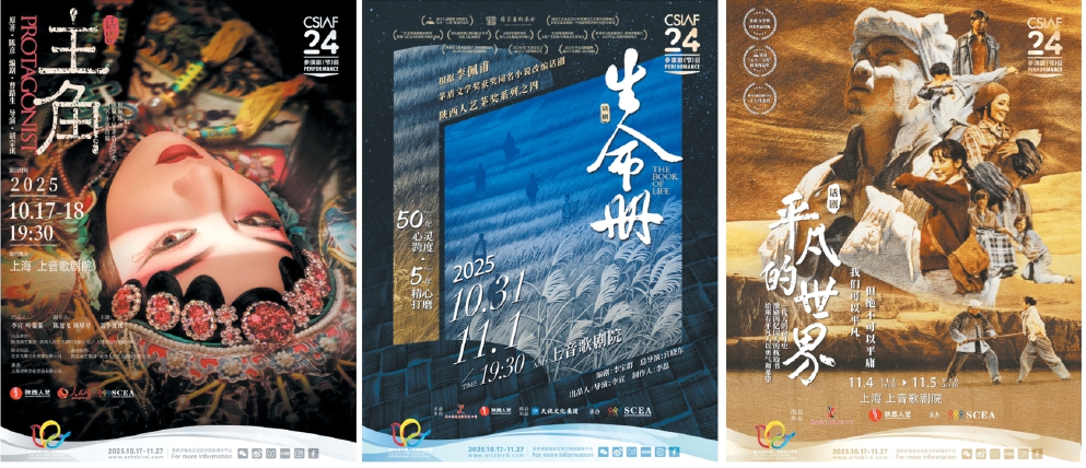 “茅奖系列”作品《主角》《生命册》《平凡的世界》《白鹿原》以及“陈彦三部曲”《星空与半棵树》五部大戏将在上音歌剧院亮相。图为部分演出海报。