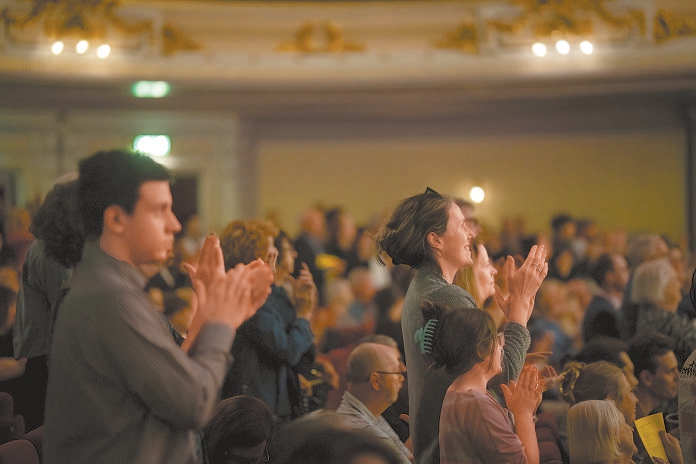 英国爱丁堡亚瑟音乐厅里,观众为中国国家大剧院管弦乐团起立鼓掌。牛小北摄