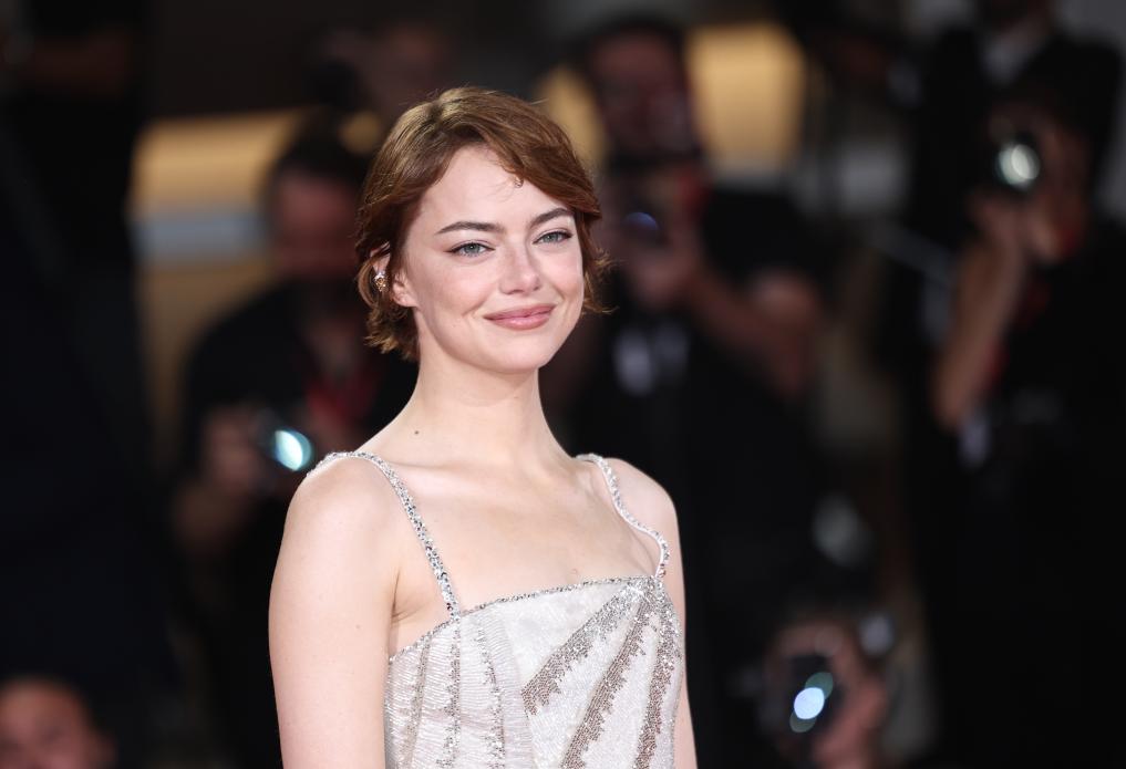 8月28日,在意大利威尼斯,演员艾玛·斯通出席电影《拯救地球》首映红毯仪式。新华社记者 李京 摄