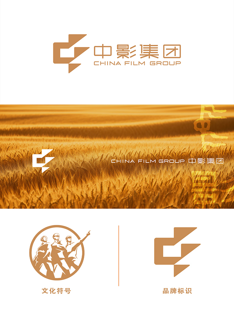 随后,全新品牌标识系统正式揭晓。这一标识系统深度融合中国传统文化元素与当代视觉语言,设计灵感源于甲骨文中的“中”字,整体形态如一面挺立的旗帜,既象征着中影作为中国电影旗帜的引领地位,也寓意其扎根中华文化、向上生长的精神姿态。同时,标识也巧妙融入了“影”字右部“彡”部首的光影意象,并将其转化为三笔向右上飞扬的三角形色块,传递出速度感、前进感和科技感。色彩上选用代表庄重、辉煌与丰收的金色,既呼应了大地的温暖厚重,也传递出太阳般的探索性与生命力,传递出中影坚守文化自信、坚持“以人民为中心”创作导向的价值追求。新标识不仅是对原“工农兵”标识文化精神的继承,更是中影面向国际、面向未来、面向新一代观众的文化新表达。