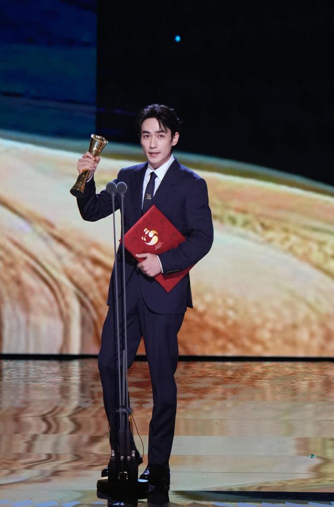 9月13日,在第二届金熊猫盛典上,电影单元最佳男主角朱一龙发表获奖感言。新华社记者 江宏景 摄