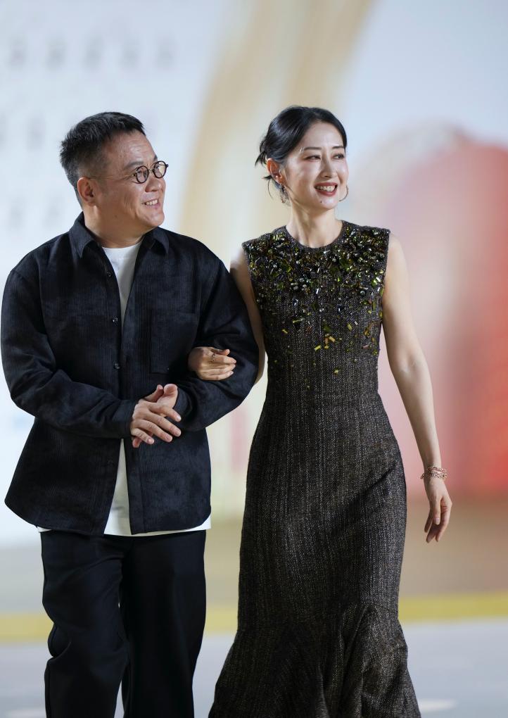 9月13日,导演宁浩(左)、演员刘敏涛走在第二届金熊猫盛典的“金熊猫大道”上。新华社记者 江宏景 摄