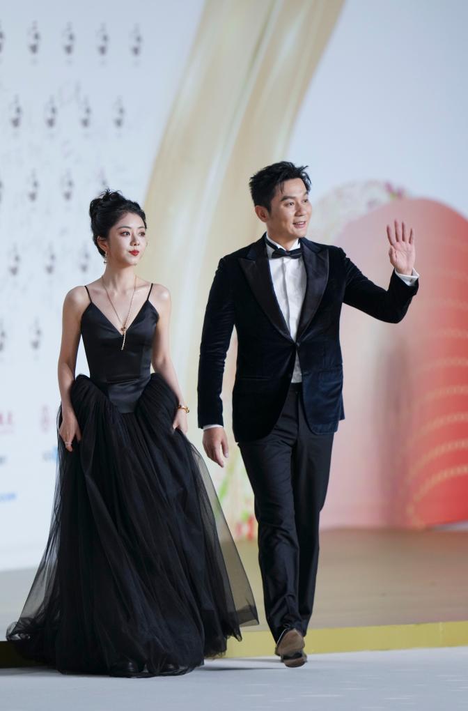 9月13日,演员佘诗曼(右)和张颂文走在第二届金熊猫盛典的“金熊猫大道”上。新华社记者 江宏景 摄
