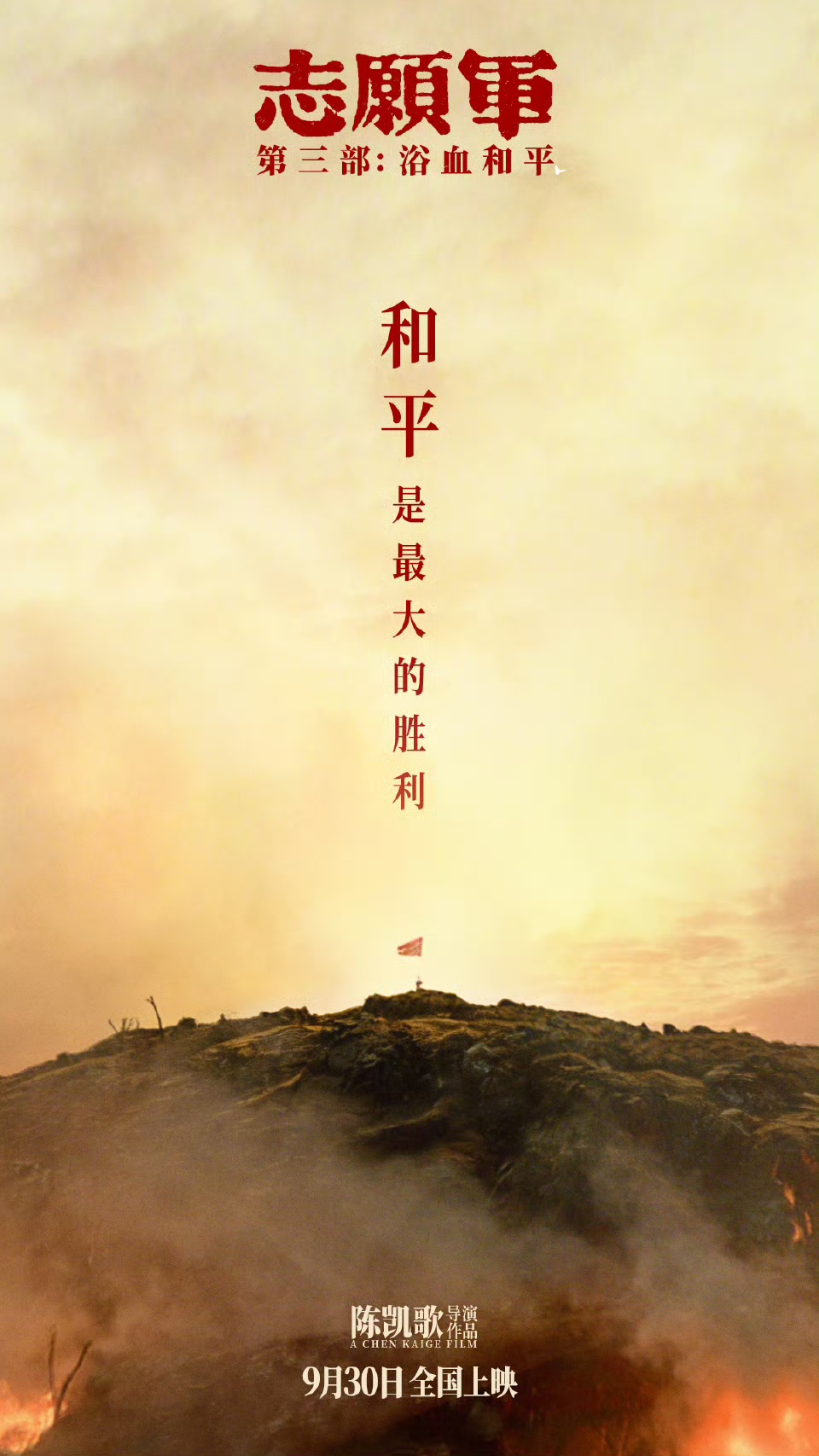 由陈凯歌执导的电影《志愿军:浴血和平》9月23日官宣预售开启,同时发布“念想”预告。作为《志愿军》三部曲系列收官之作,影片不仅呈现了“边打边谈”的全新战局,其情感的厚度与浓度也推向顶峰。预告以李晓(张子枫 饰)寻父的念想引入,呈现三部曲众角色携各自念想一路浴血奋战的风雨历程,在跌宕起伏的战局中见证一位位志愿军战士心底最朴素而真挚的牵挂。在前两部影片中,不少观众就被李家三口的亲情、松骨峰三连战士们的战友情打动,如今最终章将角色间的情感线索凝聚于一处,给观众带来更强烈的触动与共鸣。影片同步释出的“和平曙光”新媒体海报,以阵地上屹立不倒的旗帜,诉说着焦土之上永不坠落的和平信念。