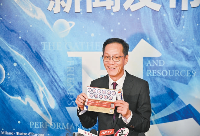 冯远征展示集章票夹。消费者凭票夹集章数量和对应票根,可兑换相应礼品。本报记者 方非摄