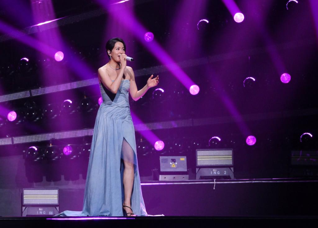 9月28日,梁咏琪在演唱《胆小鬼》。新华社发(张金加摄)
