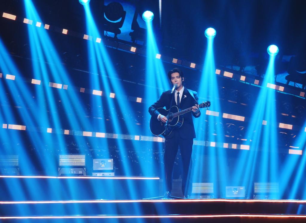 9月28日,肖战在演唱《整晚的音乐》。新华社发(张金加摄)