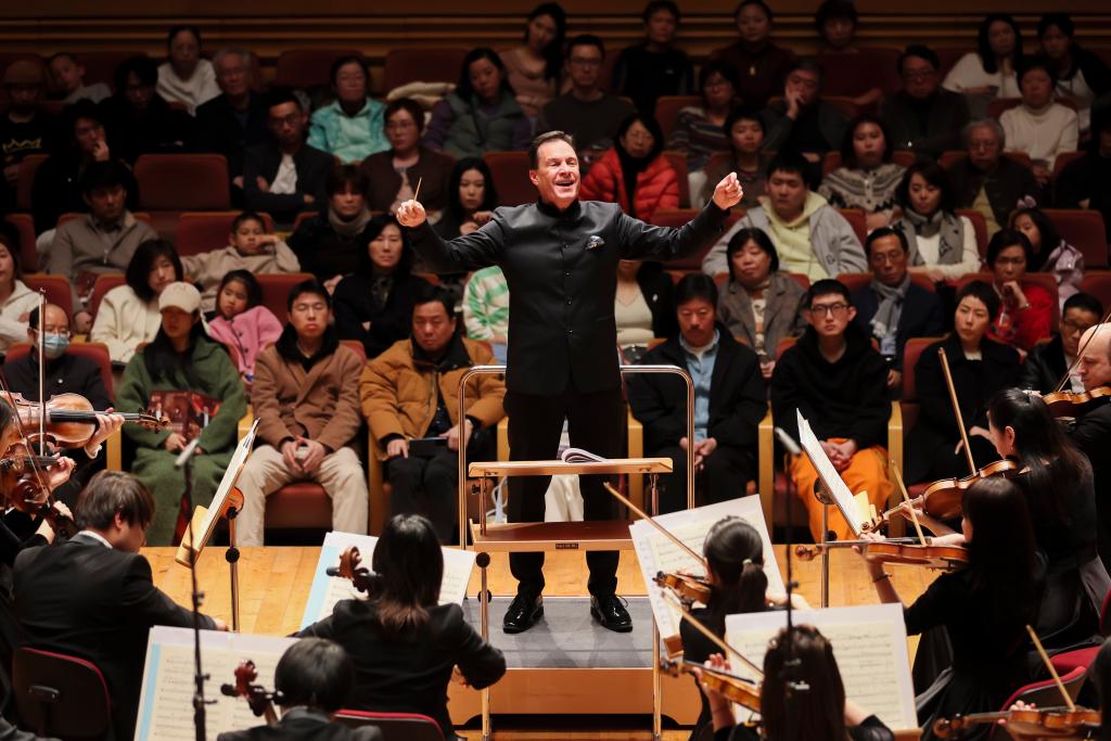 3月22日,美国指挥家克里斯托弗·罗塞尔在上海交响音乐厅指挥。新华社记者 王翔 摄
