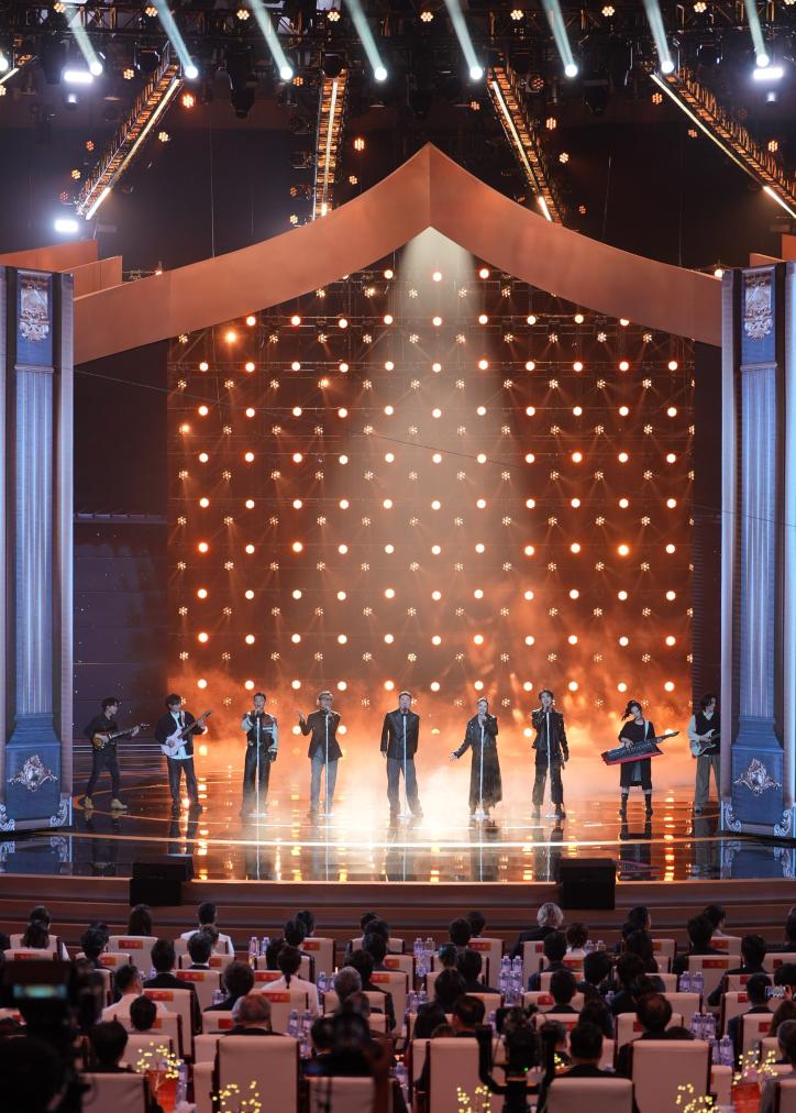 4月16日,歌手陈楚生(右二)在开幕式上演唱歌曲。新华社记者 谢晗 摄