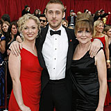 瑞安戈斯林和母亲唐娜、姐姐曼迪