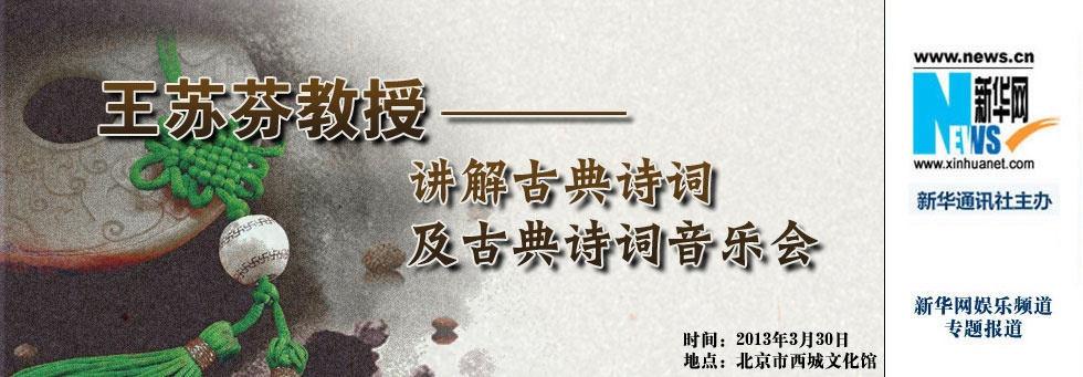 2013年3月30日,由西城区文化委员会与中国音乐学院共同主办的西城区非物质文化遗产专场演出之古典诗词歌曲演唱会在西城区文化馆剧场举办。中国音乐学院声乐教授、著名女高音歌唱家、国家一级演员、中国古诗词歌曲专家王苏芬携弟子联袂演出。