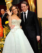 快讯:奥斯卡红毯 布什扮演者布洛林携妻子亮相