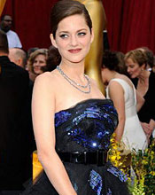 快讯:奥斯卡红毯 影后玛丽昂蓝色亮片黑纱裙美腿隐现