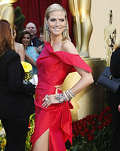 快讯:奥斯卡红毯 超模海蒂-克鲁姆妖娆红裙