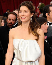 快讯:奥斯卡红毯 杰西卡-贝尔白色缎裙温柔可人