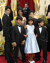 快讯:奥斯卡红毯 参演《贫民富翁》的小演员们