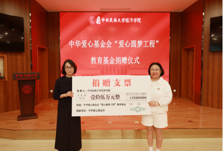 5月24日上午,中华爱心基金会“爱心圆梦工程”教育基金捐赠仪式在中央民族大学知行堂举行。中央民族大学党委副书记、校长郭广生出席捐赠仪式。中华爱心基金会执行会长马云英、副秘书长张永刚、会长助理梁伟平、会员中心主任王文尚、会员中心副主任张雷,中央民族大学党委副书记、副校长李计勇,资深教授、中国兴边富民战略研究院院长黄泰岩,党委学生工作部部长、学生处处长樊博,国内合作处处长、教育基金会秘书长白勇,以及经济学院领导班子和受助学生代表参加捐赠仪式。捐赠仪式由中央民族大学党委副书记、副校长李计勇主持。