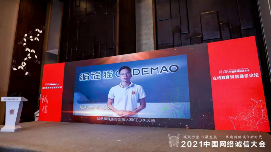 7月15日,2021中国网络诚信大会在长沙举行。在以“诚信规范 持续发展”为主题的在线教育诚信建设论坛上,编程猫作为联合倡议发起单位之一共同发布了《在线教育行业自律准则十条》。