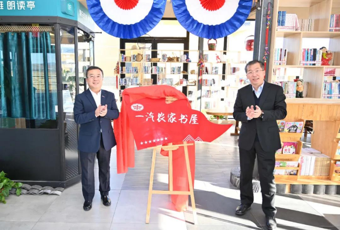中国一汽董事、党委副书记王国强为延安村“一汽农家书屋”揭牌