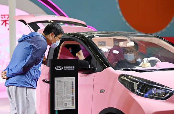 2021年9月29日,观众在天津车展参观奇瑞汽车推出的一款新能源汽车。 新华社 李然 摄