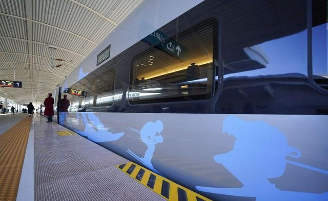 北京冬奥列车是为保障冬奥运输而专门开行的列车,连通北京冬奥会北京、延庆、张家口三个赛区。这趟新型奥运版复兴号有一个非常喜庆的名字叫做“瑞雪迎春”,远远望去宛若一条耀眼的冰蓝色丝带,上面点缀的冰雪粒子和一幅幅冰雪运动剪影暗示着“它的身份”。“冰雪专列”车厢内部处处冬奥元素丰盈,“冰墩墩、雪容融”小贴纸、冰雪主题邮局等惊喜不断。