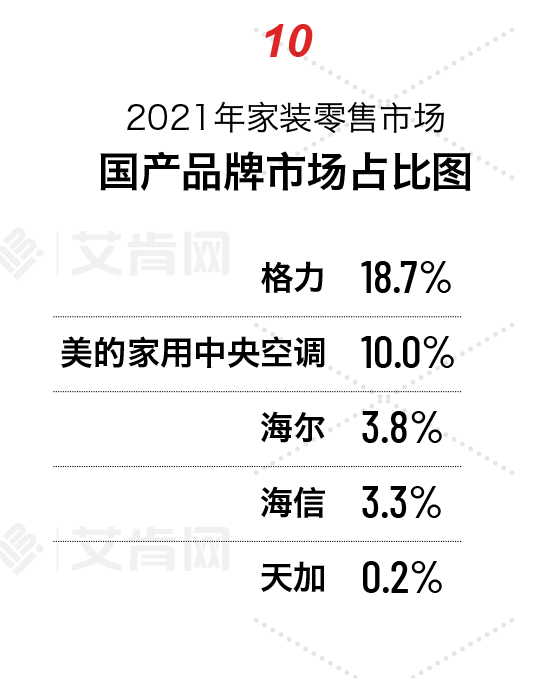 根据空调行业专业权威机构‘产业在线’数据显示,2021年度中国空调行业继续保持增长,民族品牌担纲起高质量发展的重任,并且跑出了“加速度”。在一众民族品牌阵营中,格力家用空调再次以3165万台的内销,37.37%的市占率,持续保持行业第一。不仅如此,中央空调方面,暖通空调与舒适家居行业权威媒体艾肯网发布的《2021年度中国中央空调市场报告》中,格力中央空调在众多品牌中脱颖而出,销售规模也排在全国第一位。