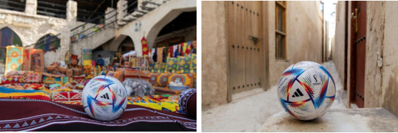 全球知名德国体育用品公司阿迪达斯正式公布了国际足联2022年卡塔尔世界杯官方比赛用球 —— “AL RIHLA 逐梦之旅”。AL RIHLA在阿拉伯语中意为“旅途”,其球身设计从卡塔尔的文化、建筑、帆船和国旗中获取灵感,以全新的珠光球面展现了当地标志性的文化色彩。