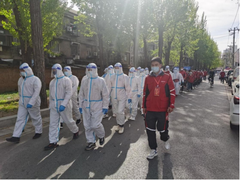 与此同时,80余位京东小哥,除在封控区配送京东物资外,还兼具志愿者身份,按照社区进行分组,根据街道统一安排,为社区居民提供核酸检测登记、秩序维护、运送生活垃圾等志愿服务,有效弥补封控社区内部志愿者人力缺口,也义务支持了社区街道的防疫工作。