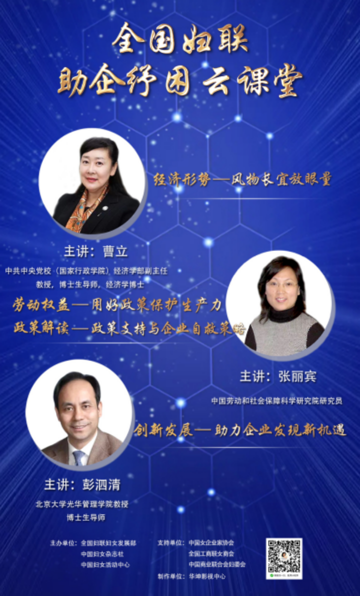 中国劳动和社会保障科学研究院张丽宾研究员,以“护航生产正当时”“同舟共济渡难关”为题,根据女企业家经营领域和地域特点,既有对国家一揽子普惠帮扶政策分析,也有对重点区域地方举措的详解,并重点针对女企业家集中的中小微企业和服务行业帮扶政策进行梳理,同时就如何化解各类纠纷给予提醒和忠告。