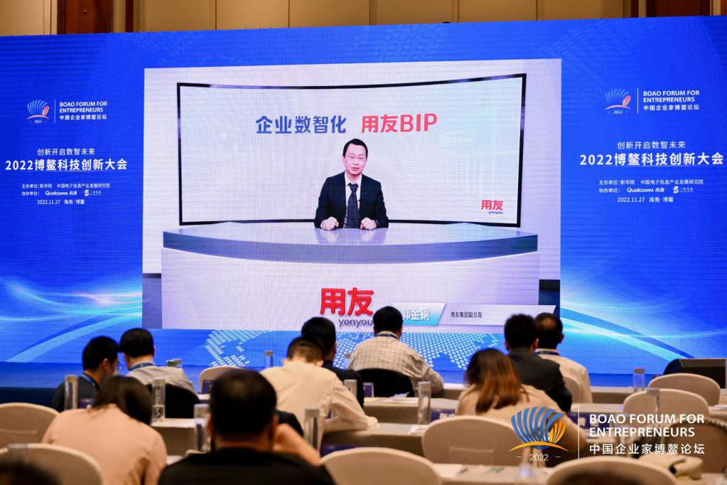 新华网博鳌11月27日电(赵秋玥)11月25日-28日,2022中国企业家博鳌论坛在海南博鳌举行。在27日召开的2022博鳌科技创新大会分论坛上,用友集团副总裁郭金铜通过在线方式参加,并以《数智创新成就数智企业》为题进行主题演讲。